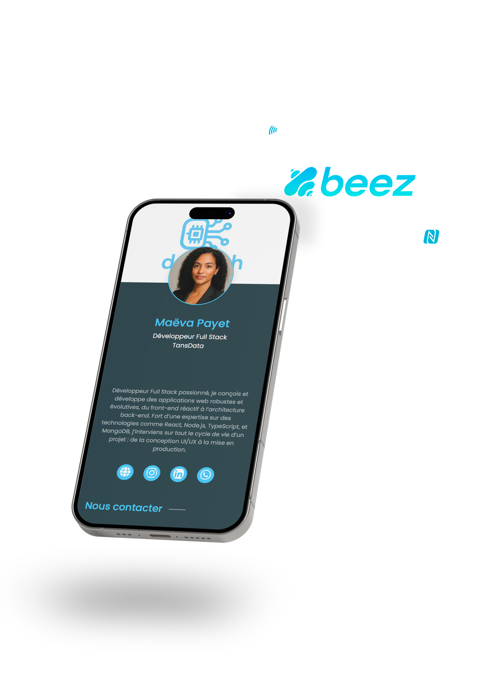 Avec BEEZCARD, présentez votre profil, vos services, votre portfolio et vos coordonnées de manière élégante, le tout sur un seul lien. Pas d’impression, pas de gaspillage. Il suffit d’un simple geste ou de scanner votre QRcode pour vous connecter instantanément.